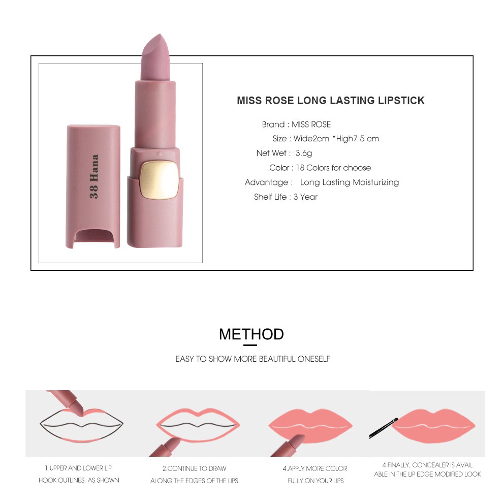 Miss Rose Matte Lipstick Waterproof Lips Moisturizing Easy To Wear Sticks Gloss Lipsticks Cosmetic