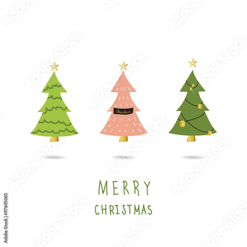 Light Pink Green Gold Christmas Tree Card With Doodle Hand