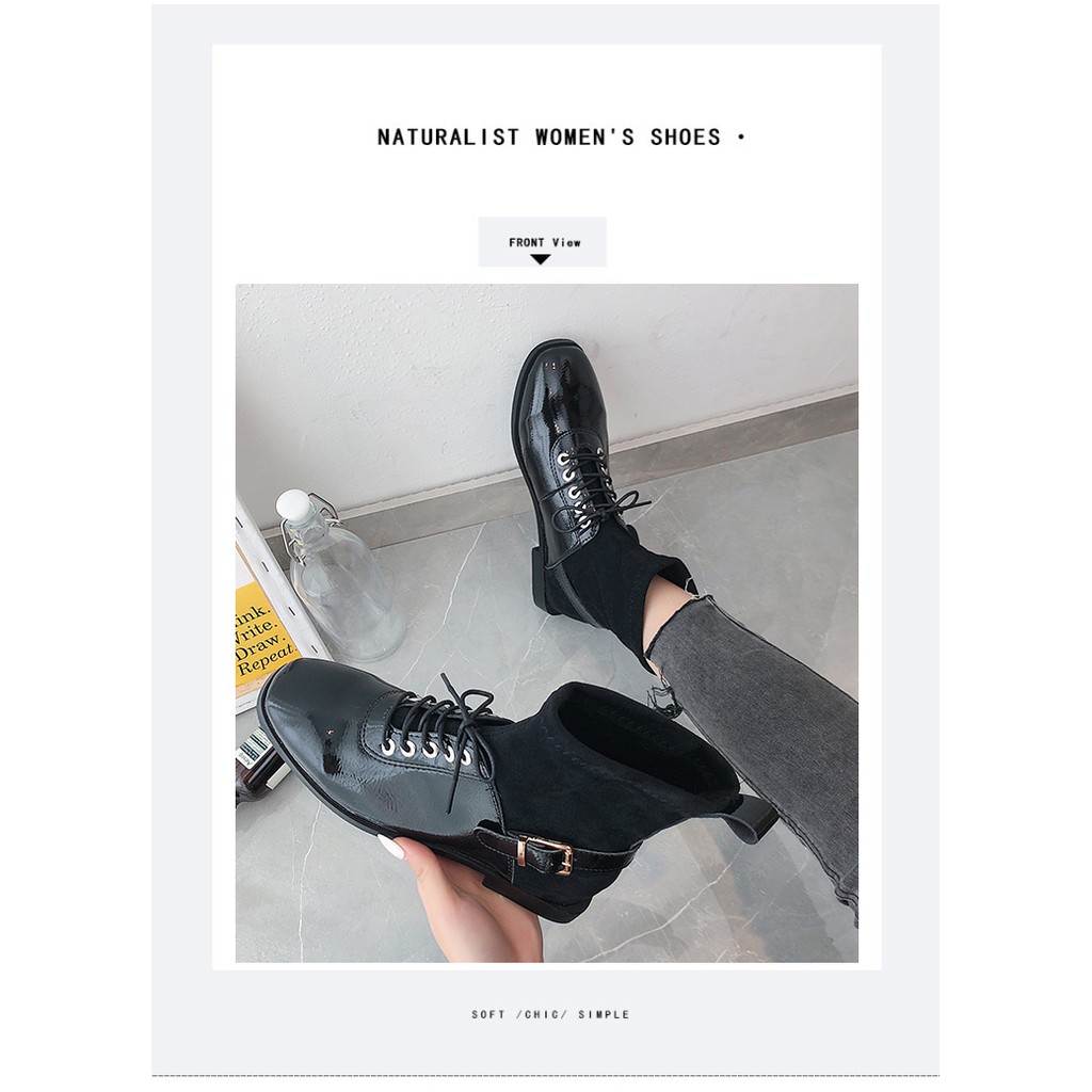 Sepatu Boots Martin Ankle Low Block Heels Simpul Tali Ala